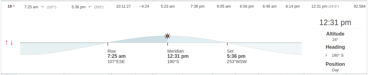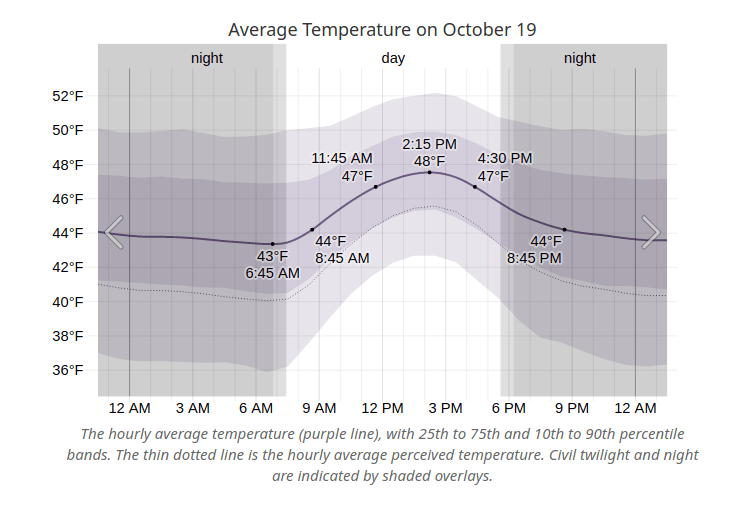 Night is somewhat longer than day, with sunrise Oct 22, 2022 expected at 7:25am and sunset at 5:36pm. Our port time is currently scheduled for 7:00am to 1:15pm.
