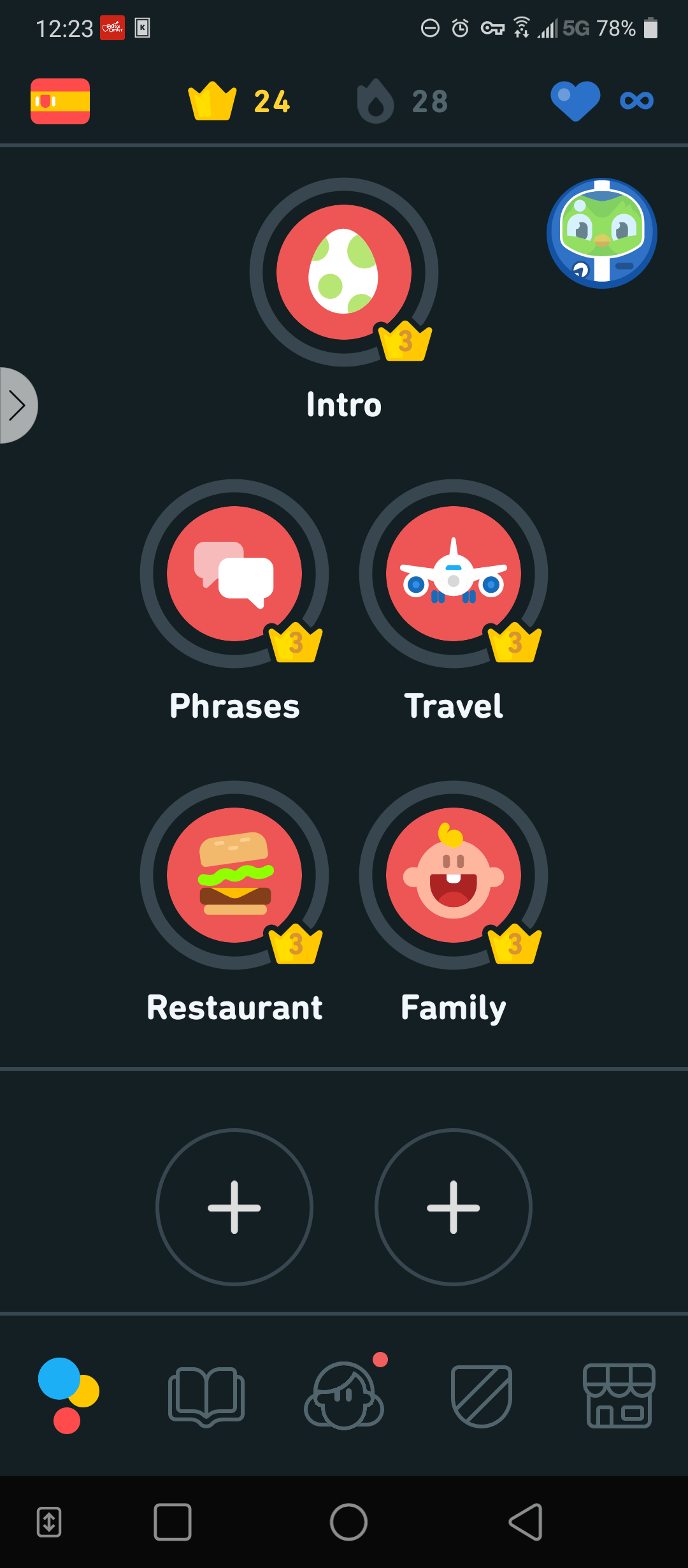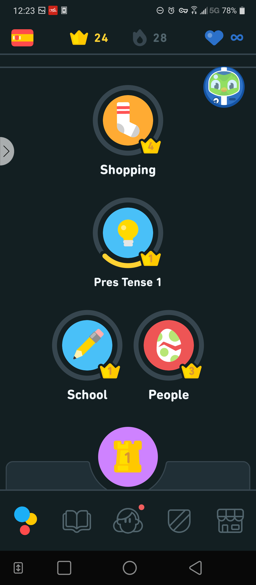 I’m using DuoLingo as my learning tool. Here’s the progress I’ve made: