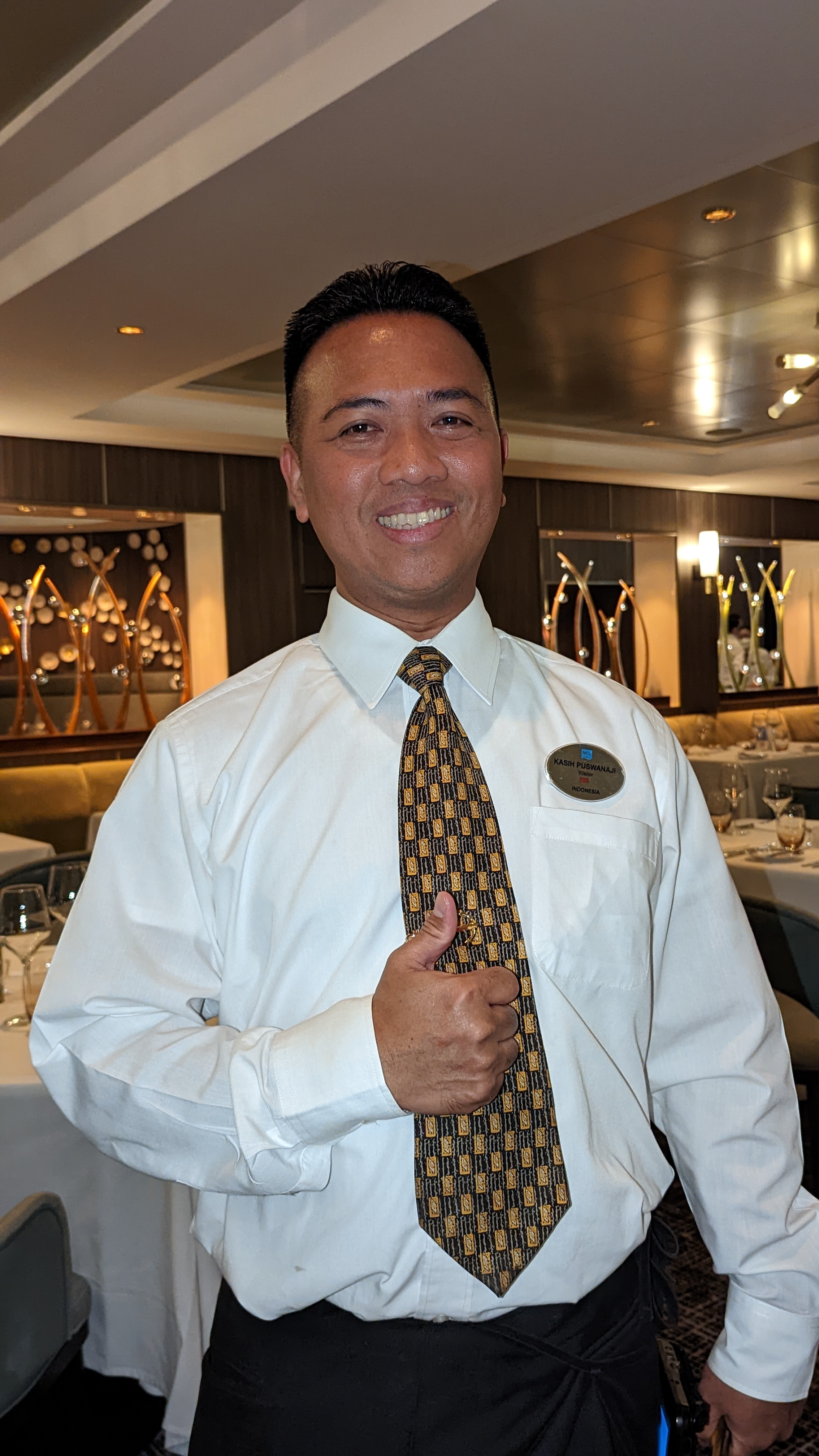 Our waiter, Kasih, and his team provided great service. We were reflecting during the meal that the continual pacing and removing of dishes and tableware was not something we’re used to, and in our opinion the activity bordered on obtrusive. We realize in a multi-course fine dining experience that’s all part of it…in this way we’re the ones who need to adjust, not the wait staff