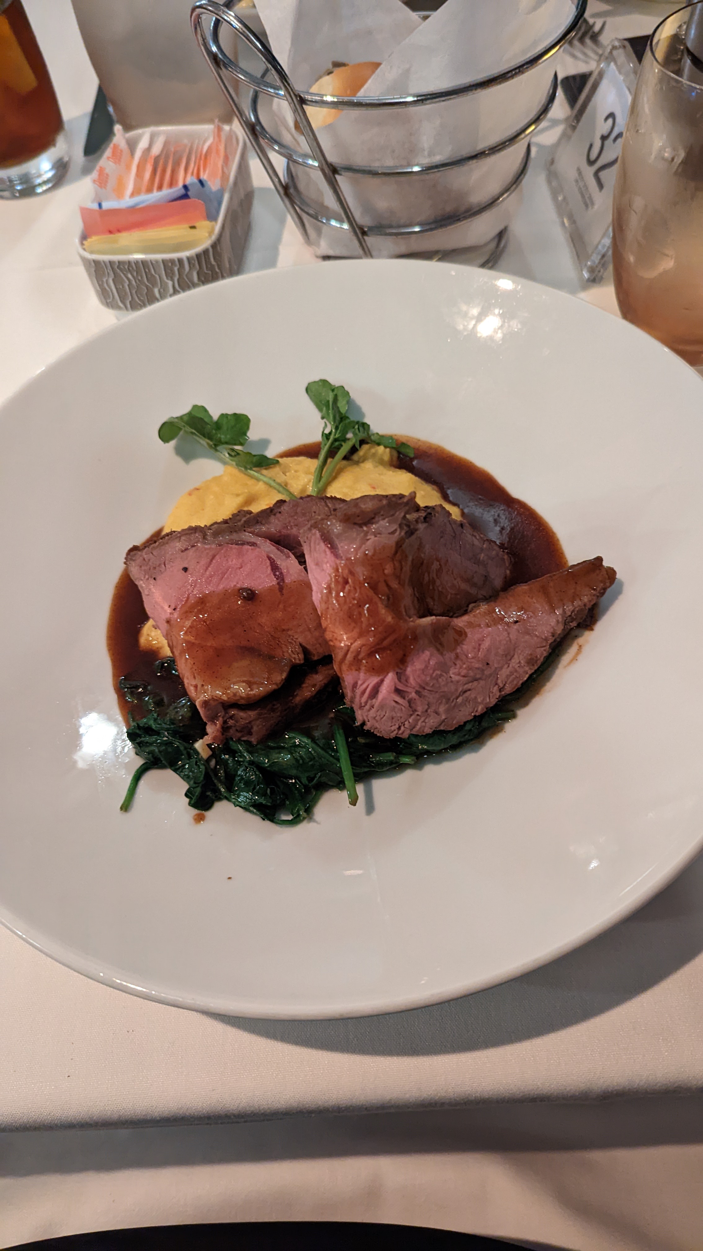 Dinner was at Savor I had the Roast Beef and a Caesar salad I was impressed with the dish — I’ve not often had the experience of a meal that contained rich texture changes between the parts of the entree dish, as well as a variety of tastes. As an example, I’d never eaten wilted Spinach before, and I found I kind of like it.