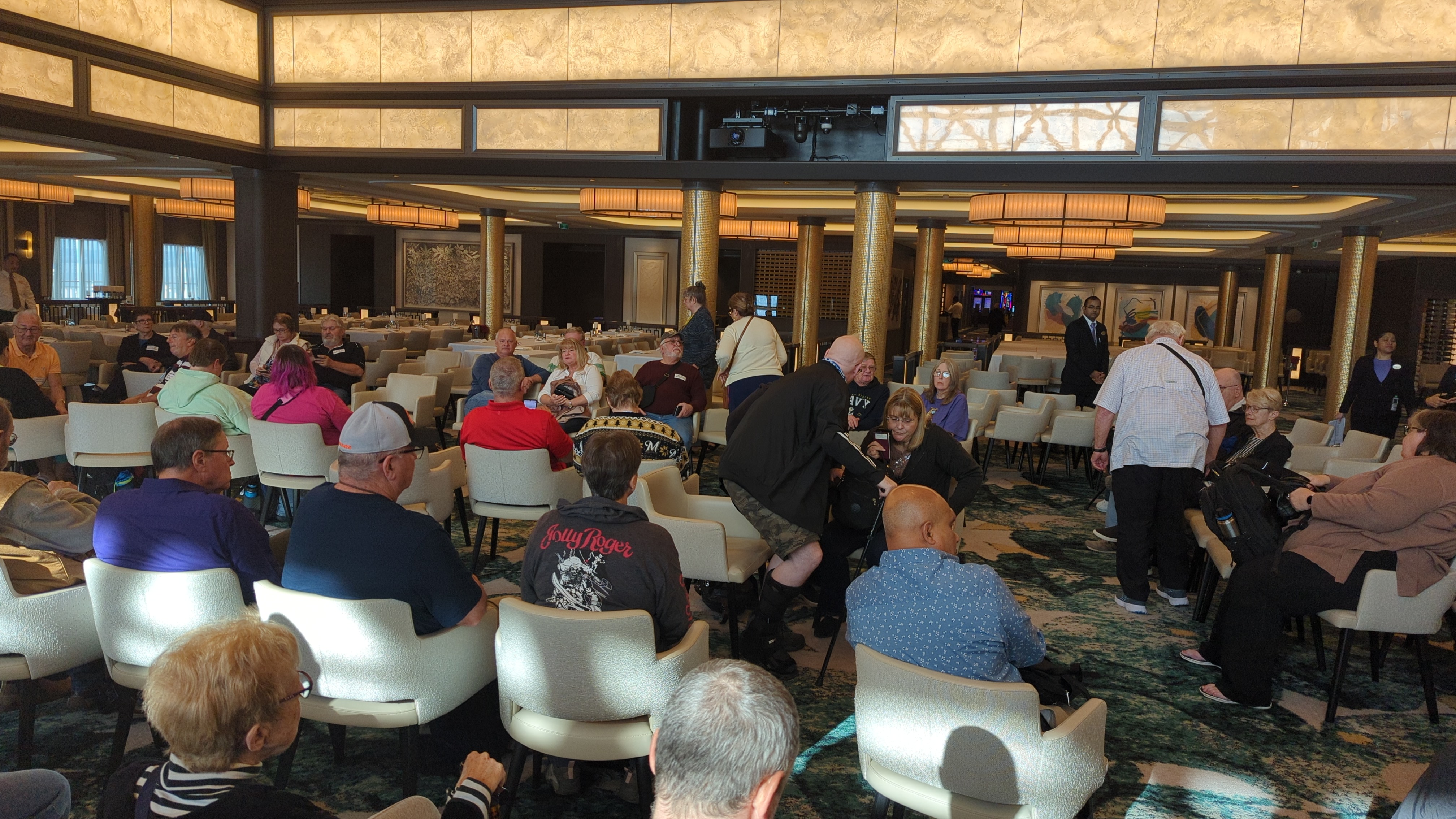 We have about 150 people back-to-back today. We are waiting in Cagney’s at the moment, have been here for about 90 minutes.