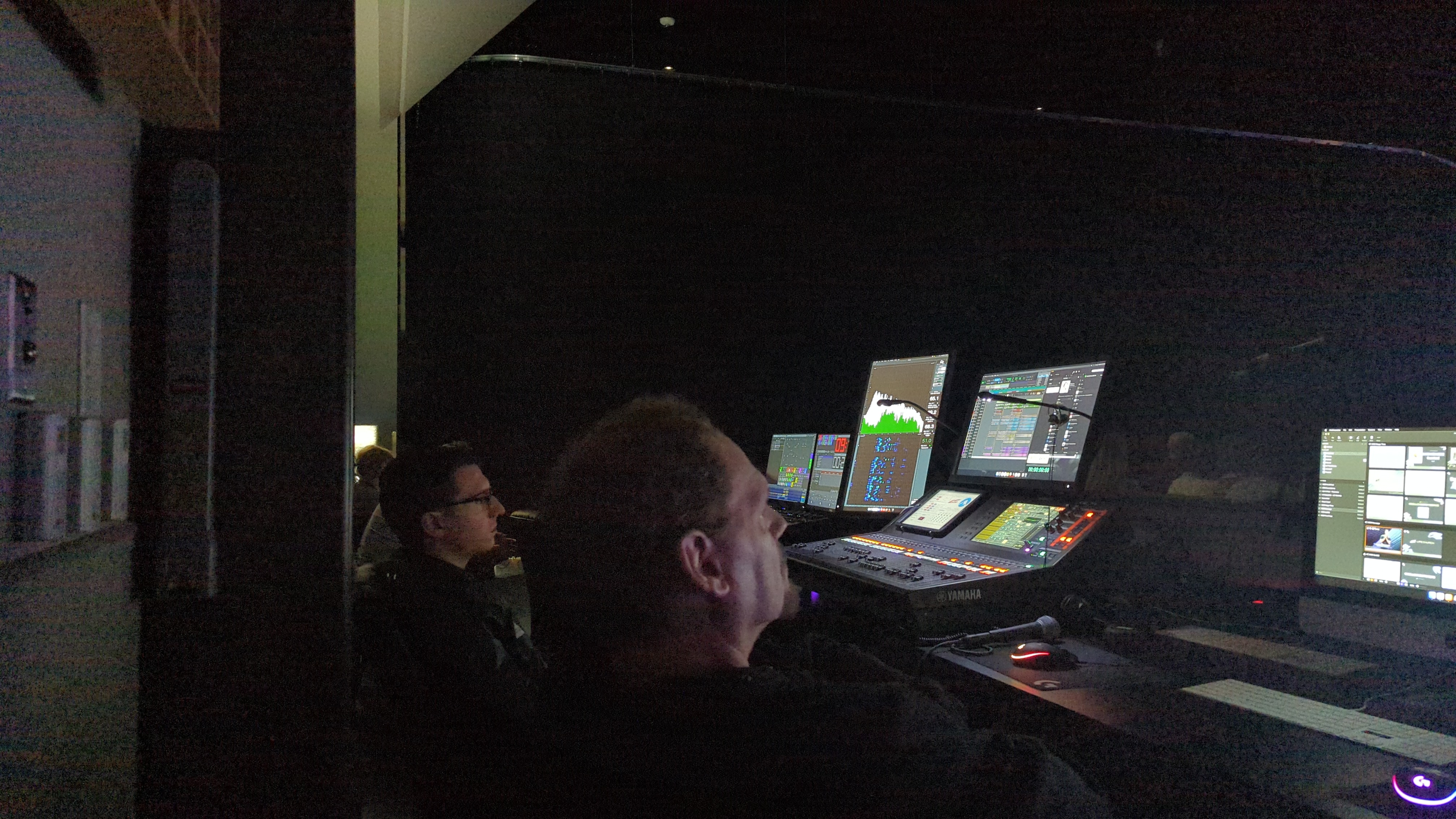 See the guy sitting by the post, center left of the photo? That’s Luke. He’s filling in for me at church. I am a contract Audio Engineer for Life.Church in Derby, about 4 miles from home. It has been a bit intimidating, this transition, because Luke has a few years experience in the live concert field, and unlike me he still has his full range of hearing. I am impaired in the upper mid-range due to years of playing my headphones too loud.
