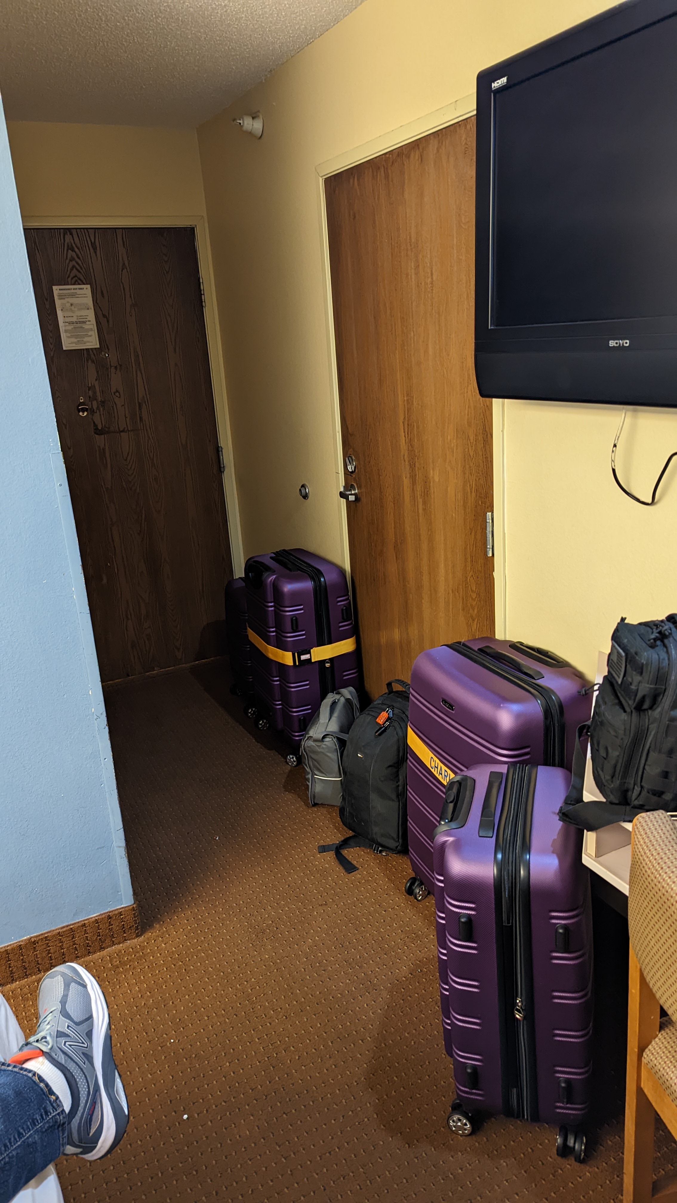 It offends the “handle it one” freak inside of me, but in this case it was the right decision…pack at home just to make sure everything fits, then repack in the hotel to the configuration that means lost luggage won’t make a super-large impact on our trip.