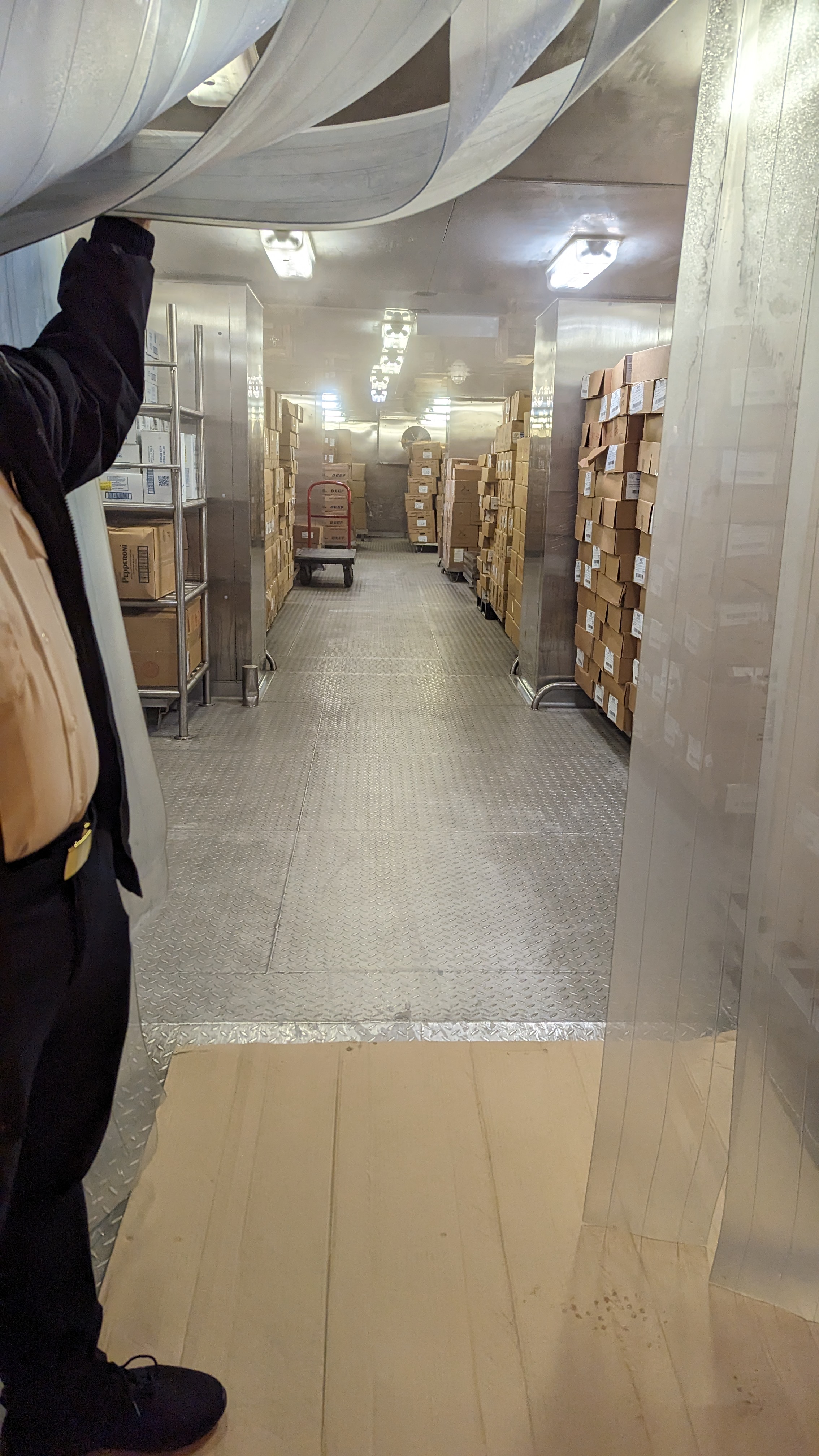 Then down we went to the provisions…where we saw part of the food stores — including the meat locker. “You can’t go in there for your own safety” because it’s so cold. But look in? That we could…