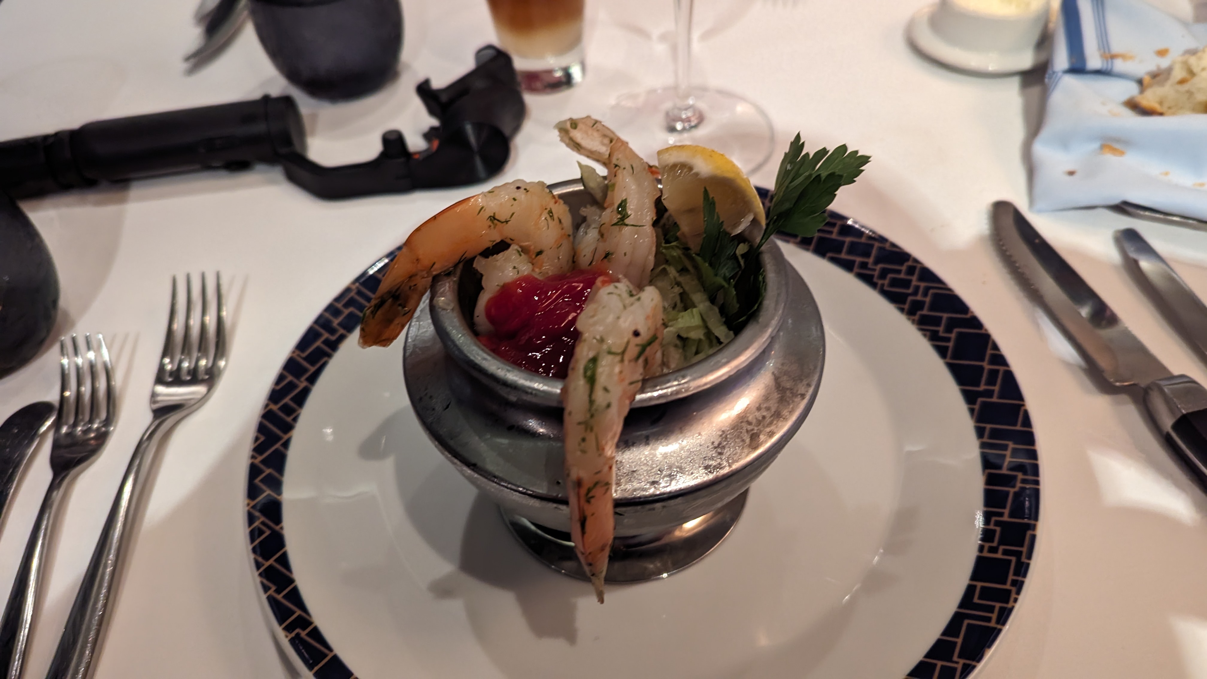 Shrimp cocktail. Balanced presentation, served at the proper temperature, with ample cocktail sauce and large, firm shrimp. Tasty!