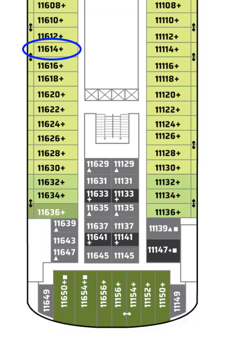 And we go from under restaurants and kitchen spaces, low in the ship, to near the elevators/stairs with staterooms above and below us…and, of course, the balcony. All in all, I think it was a good $177 investment.